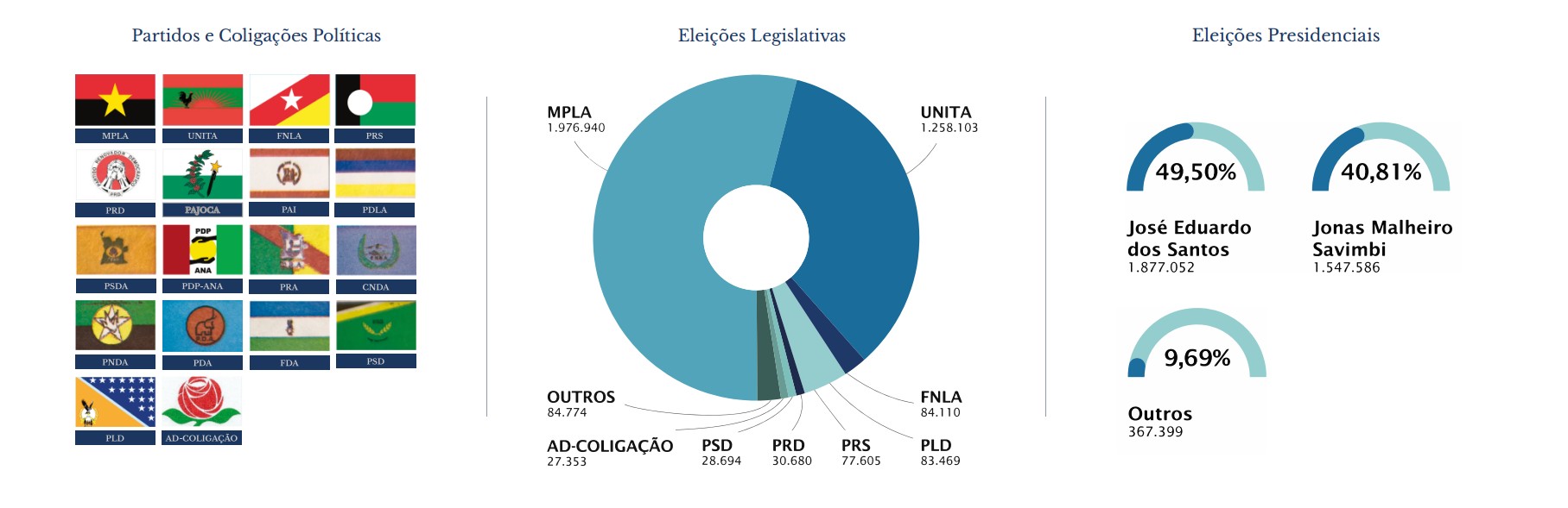 Santos, líder do MPLA, obteve 1.877.052 votos (49,50%),